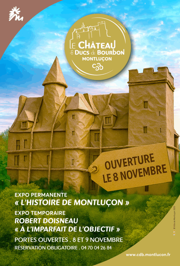 Nous sommes impatients de vous accueillir pour vous faire découvrir le château avec son exposition permanente sur l’histoire de Montlucon et son exposition temporaire sur le photographe humaniste Robert Doisneau.